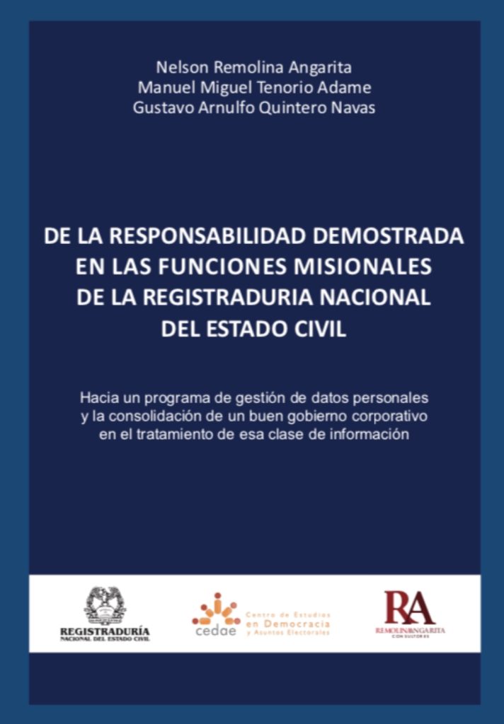 Los invitamos a leer esta obra sobre accountability y tratamiento de datos personales, publicada en junio de 2018 por la Registraduría Nacional del Estado Civil, el Centro de Estudios en Democracia y Asuntos Electorales (CEDAE) junto con la Editorial Temis. Sus reflexiones y recomendaciones son aplicables a entidades públicas o empresas privadas de cualquier parte del mundo.